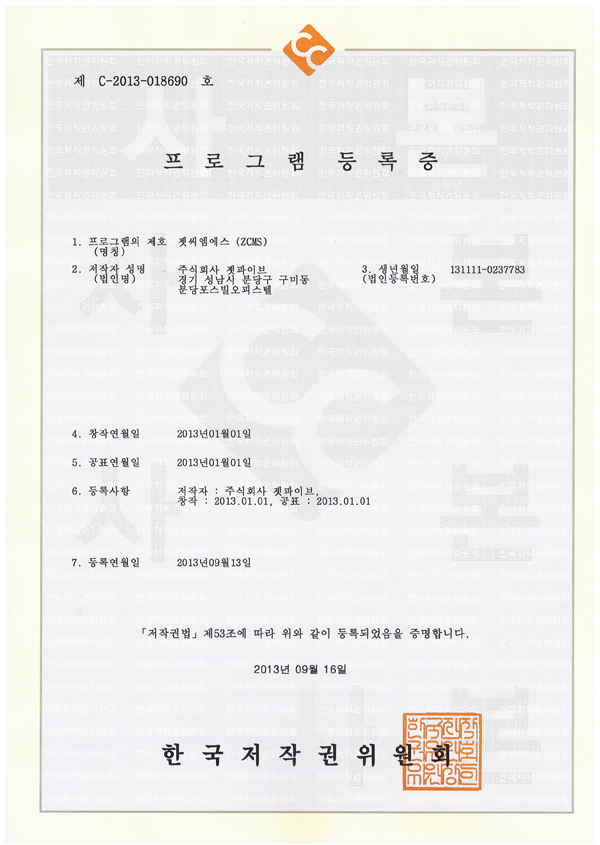 이에 ZCMS 버전 3.0 (전자정부표준프레임워크 버전)은 법적 저작물로의 저작권 보호를 받습니다.